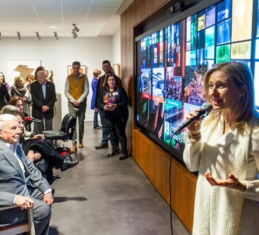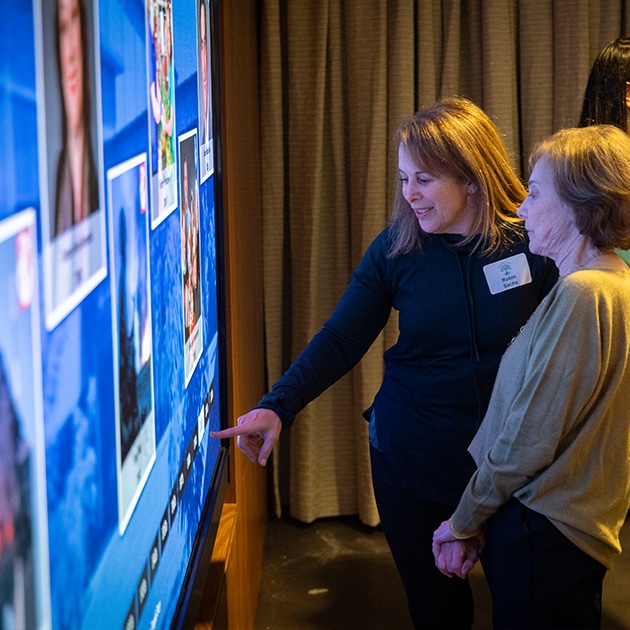 The new Pollock Family Media Wall brings Temple’s core values to life in innovative ways. Experience Temple’s history through an interactive timeline and fun trivia quiz; learn about Temple’s influence on the city of Dallas; discover how Temple feeds its neighbors in the Bounty photo essay, and meet the 100-plus member who have been beautifully photographed in The One Project. And many congregants have shared their own histories on My Temple Story.